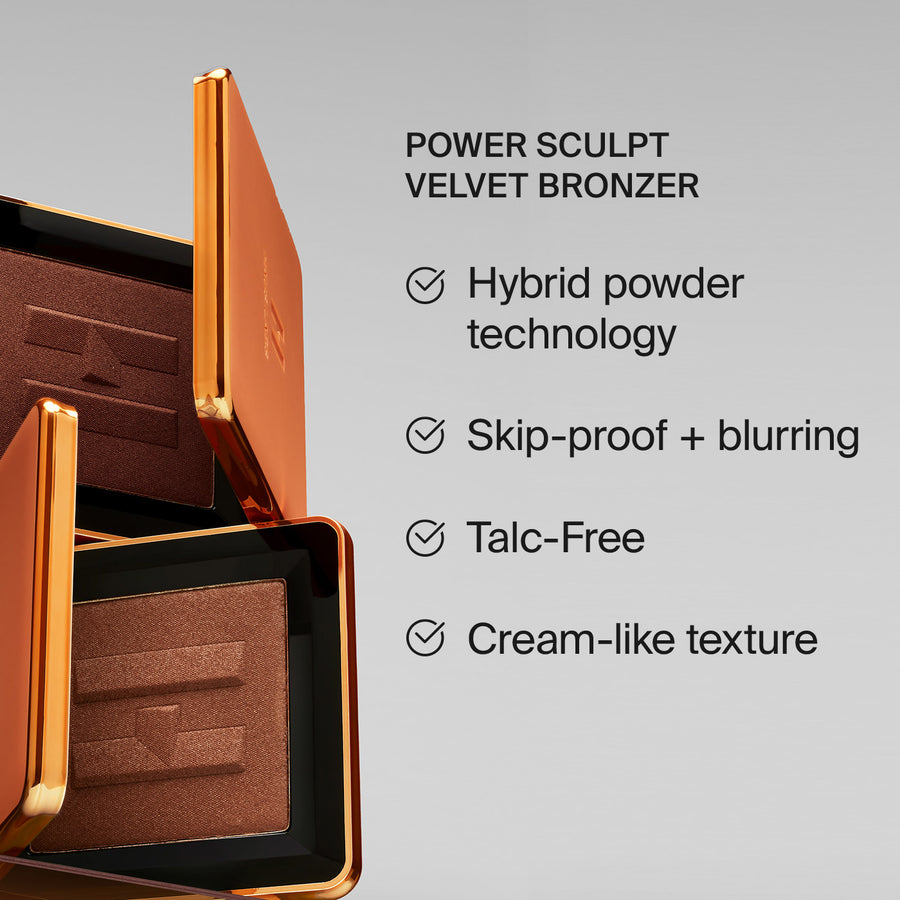 Bronsa upp huden med Power Sculpt® Velvet Bronzer. Upplev den krämiga, sticksäkra formulan som sömlöst blandas och suddas ut samtidigt som den tillför naturlig värme.